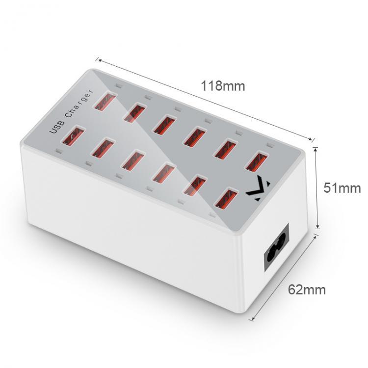 Uscita: 12 porte USB-A, 5V, fino 2.4A