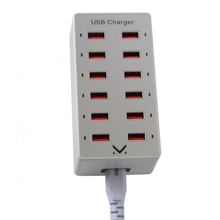 AUSB12 è il caricatore USB a 12 porte ideale per chi ha bisogno di caricare più dispositivi contemporaneamente. Con il suo cavo da 1,5 metri, offre flessibilità e praticità in qualsiasi ambiente. Perfetto per uffici, attività commerciali o eventi, consente di ricaricare fino a 12 dispositivi con batteria ricaricabile in modo rapido e sicuro.
