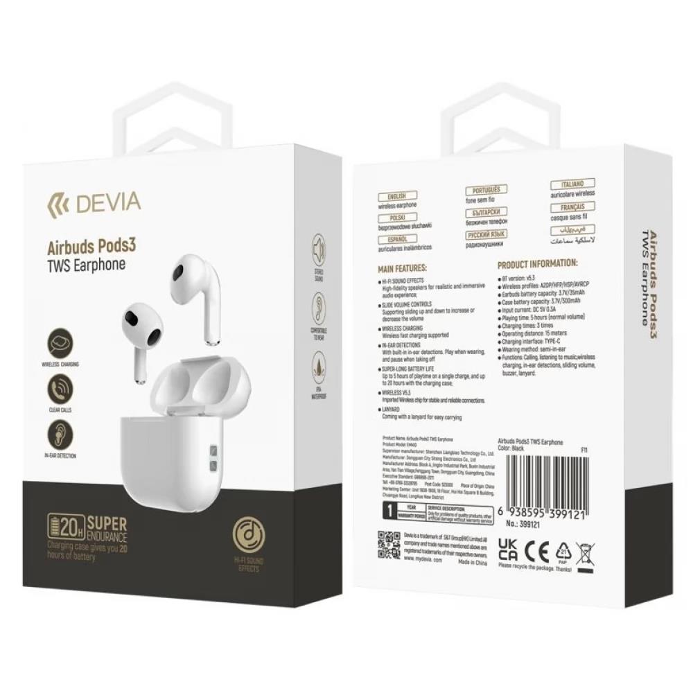 AURICOLARI BLUETOOTH STEREO PODS3 TWS 5.3 EM410 CARICA WIRELESS WHITE