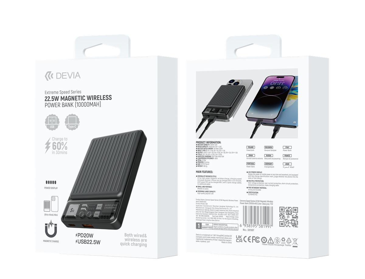 POWER BANK 10.000MAH MAG PD 22,5W WIRELESS GREY