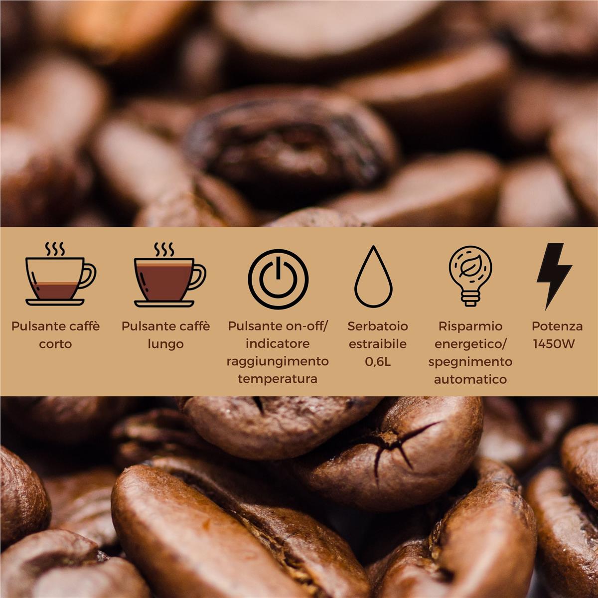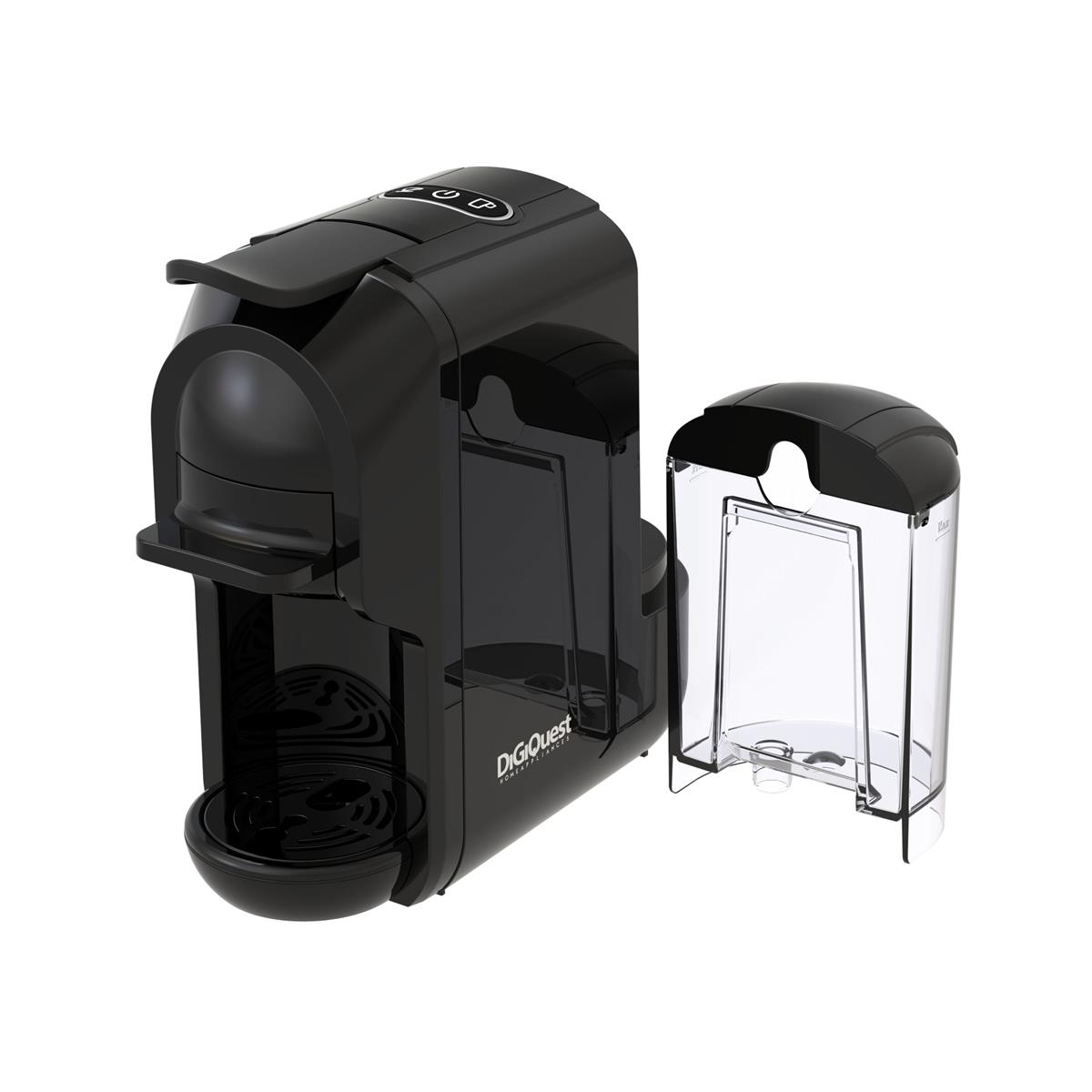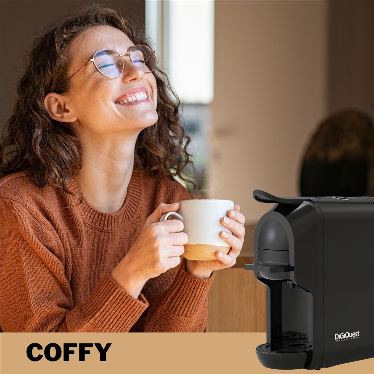 Digiquest Coffy è una macchina da caffè progettata per chi desidera la qualità del bar a casa. Con una pressione della pompa di 19 bar e una potenza di 1450W (con alimentazione: 220-240V~ 50/60Hz), garantisce caffè caldo, cremoso e perfettamente estratto. Coffy si adatta ogni esigenza e gusto: è possibile sostituire la cialda ESE inclusa nella confezione con moduli compatibili con capsule Nespresso®, Lavazza A Modo Mio®, Nescafé® Dolce Gusto®, Lavazza Blue® e caffè in polvere. La sua compattezza e praticità rendono questa macchina l'alleato ideale per un caffè perfetto ogni giorno.