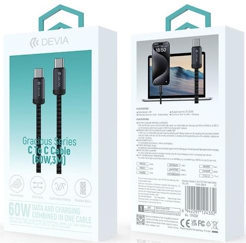 CAVO DATI TYPE-C - TYPE-C 3MT 60W 3A BLACK