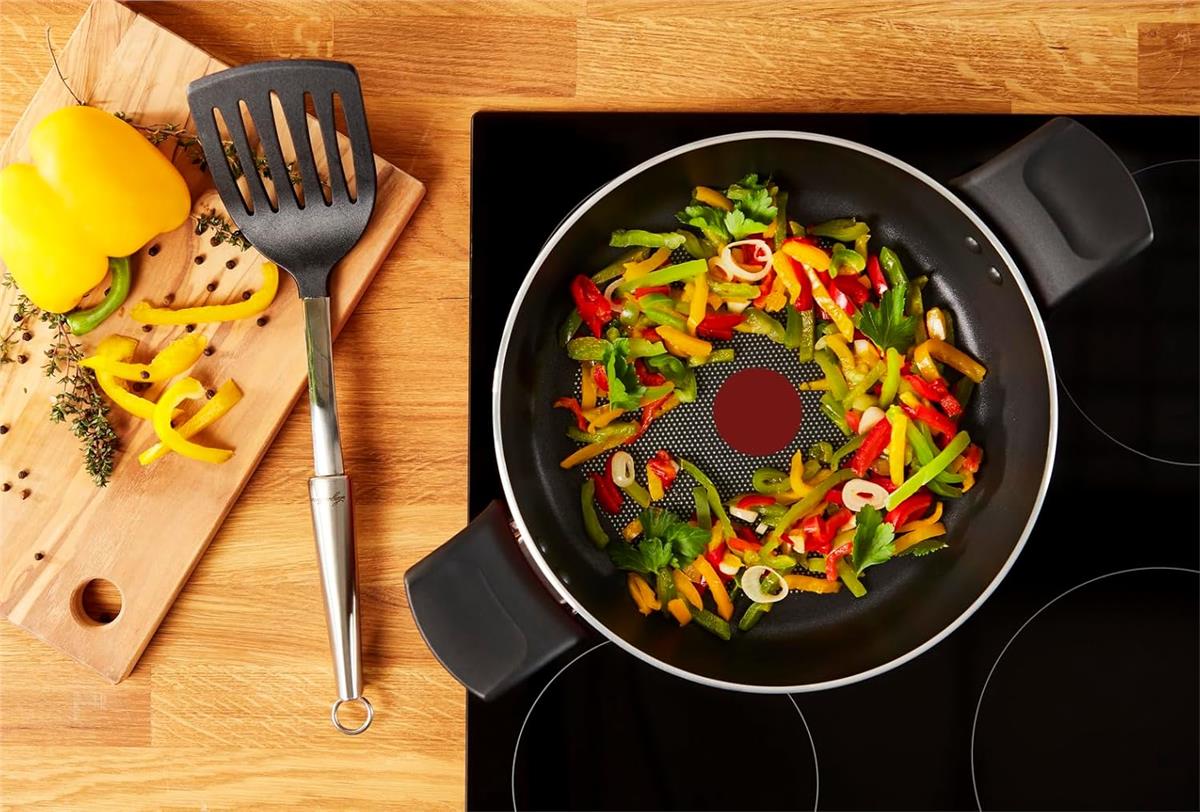 Le padelle sono dotate della tecnologia brevettata Lagostina Thermo-signal, che indica il momento ideale per iniziare la cottura. Basta guardare il bollo al centro della padella: cambierà colore quando raggiunge i 180°C.