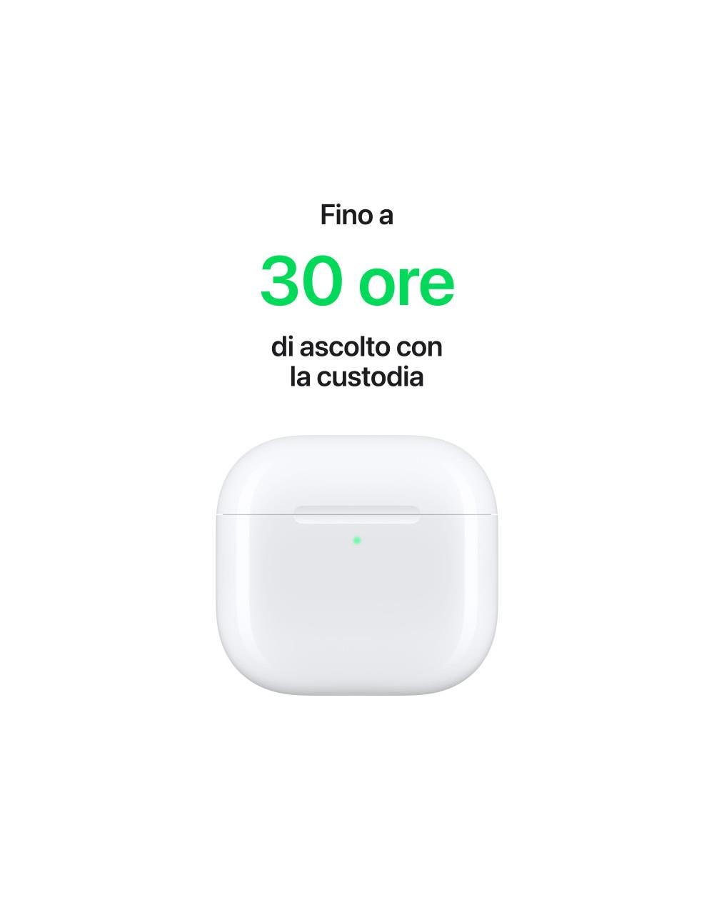 Gli AirPods offrono 5 ore di ascolto1 e 3 ore di conversazione con una sola carica.2 E sono fatti per seguirti ovunque: la custodia ti permette di ricaricarli più volte, per un totale di oltre 24 ore di ascolto.3 Serve una ricarica al volo? 15 minuti nella custodia ti danno 3 ore di ascolto4 o 2 ore di conversazione.5