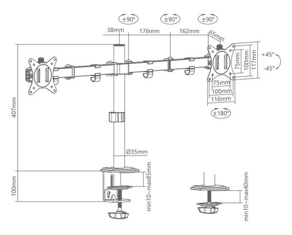 Supporto universale da tavolo per doppio monitor