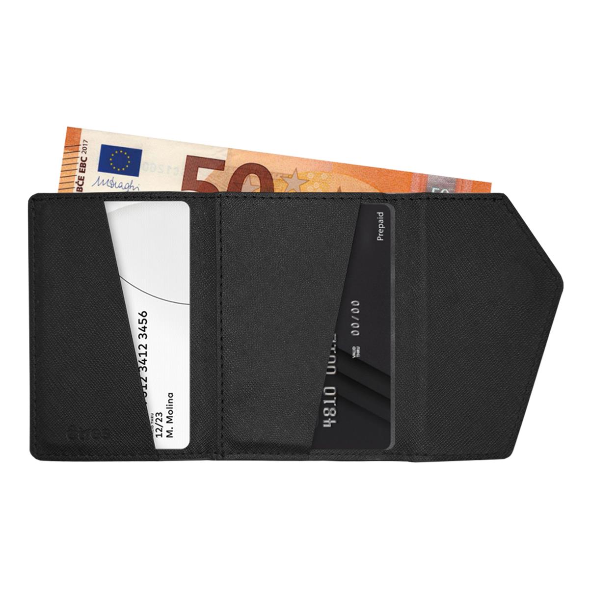 Dotato di diversi scomparti per carte, con una spazio pensato per i contanti.