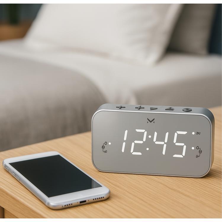 Non è solo una sveglia: grazie alla porta USB integrata, puoi ricaricare comodamente il tuo smartphone mentre dormi, senza bisogno di ulteriori prese o caricabatterie. Con il doppio allarme e la possibilità di scegliere tra radio FM o buzzer, iniziare la giornata sarà ancora più semplice.