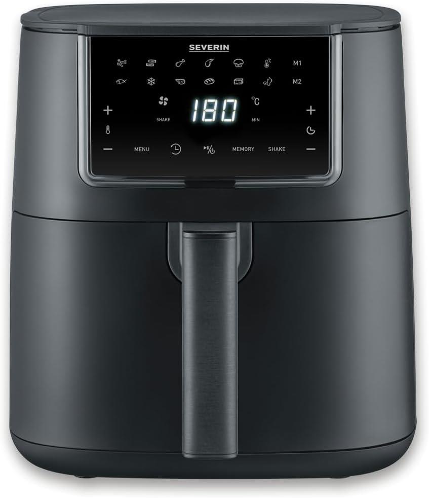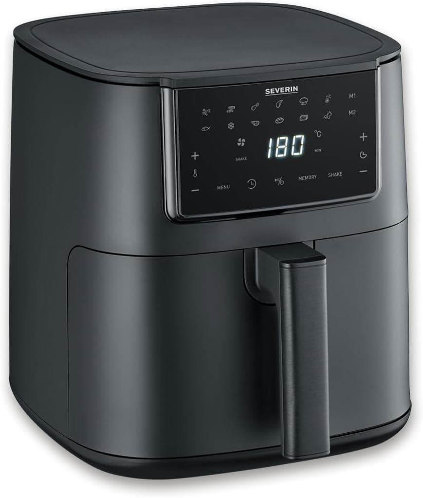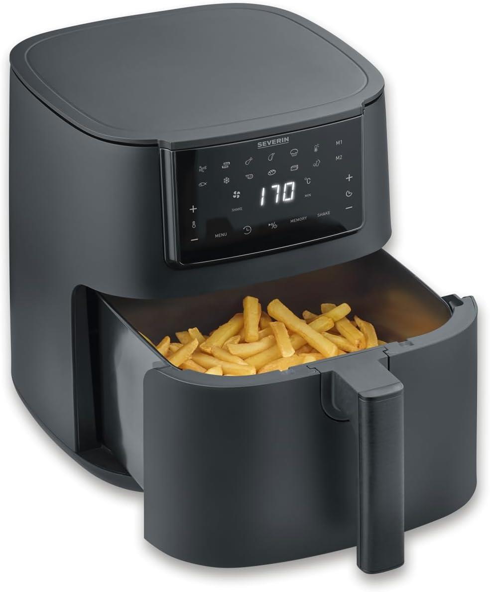 Con una capacità di 7 litri, la friggitrice ad aria calda Black Line “Single XXL” offre molto spazio per i piatti più salutari: ideale per le famiglie, per chi prepara i pasti o per chiunque abbia un grande appetito. Che si tratti di verdure croccanti, prodotti da forno freschi o piatti di carne a basso contenuto di grassi, il tempo di riscaldamento rapido consente di risparmiare tempo nella vita di tutti i giorni, mentre il semplice funzionamento a sfioramento permette un utilizzo intuitivo. Grazie alla tecnologia ad aria calda senza grassi, i cibi sono croccanti all’esterno e succosi all’interno, senza l’aggiunta di olio. Con funzione shake reminder per un promemoria automatico e una doratura uniforme degli alimenti. Facile da pulire grazie alle parti rimovibili e lavabili in lavastoviglie e al rivestimento antiaderente senza PTFE.