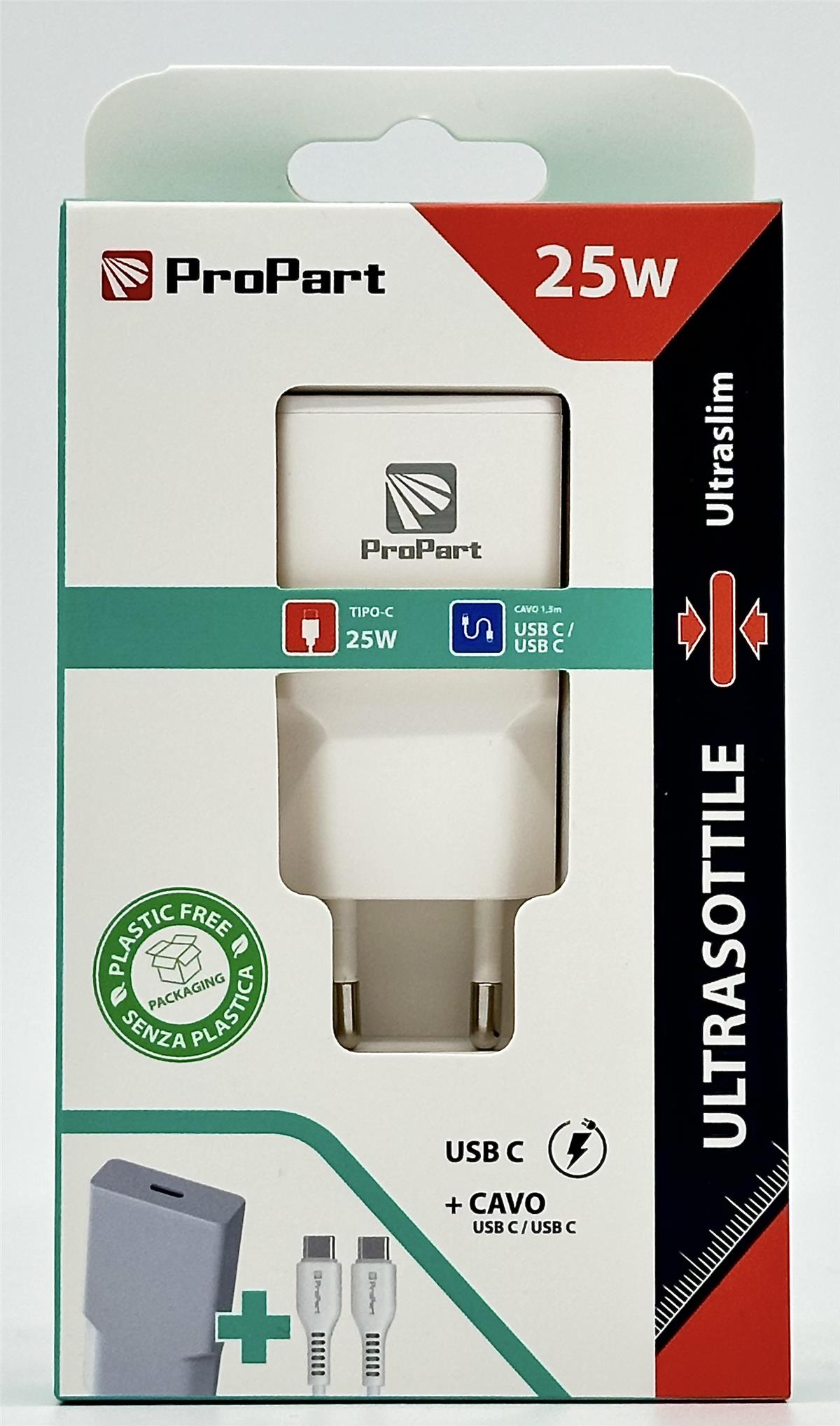 CARICA RETE PD 25W 1TYPE-C + CAVO TYPE-C/TYPE-C 1,5MT ULTRASLIM WHITE