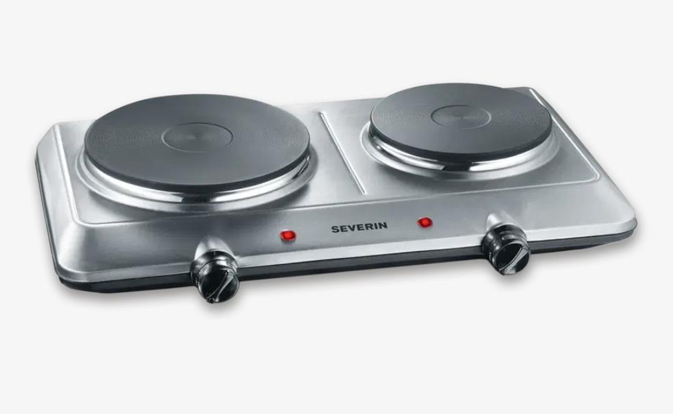 Doppia piastra con 2 anelli riscaldanti: diametro 15 cm con circa 1.000 watt e diametro 18 cm con circa 1.500 watt