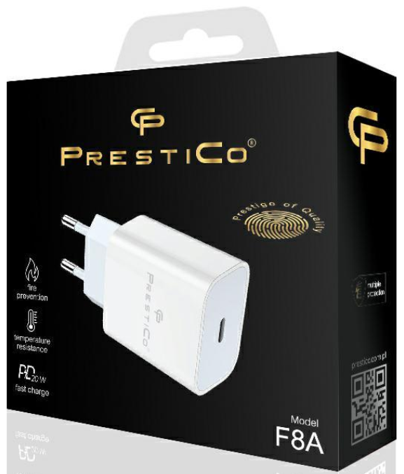 CARICA RETE PD 20W F8A 1TYPE-C WHITE