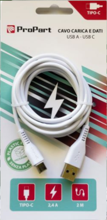 CAVO DATI TYPE-C - USB 2MT 2,4A WHITE