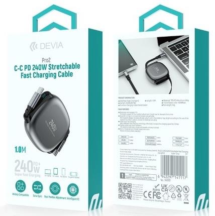 DEVIA – Pro2 C-C PD 240W Stretchable Fast Cable Cavo USB-C a USB-C Retrattile PD 240W (1M) – Modello EC662