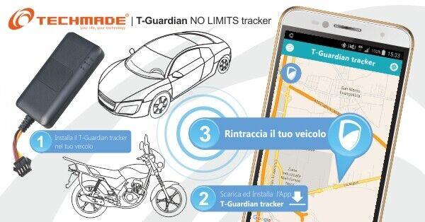Techmade T-Guardian No Limits Tracker è un piccolo GPS tracker da installare sul tuo veicolo che associato alla "T-Guardian APP" per ANDROID e/o iOS permette di rintracciarlo ovunque esso sia. Piccolo e facile da installare GPS tracker localizzerà il tuo veicolo anche entro un determinato raggio preimpostato grazie alla funzione GEO-FENCE.