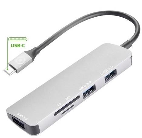 ADATTATORE USB-C PROHUB È L’ELEGANTE ADATTATORE MULTIPORTA USB-C CON FINITURA IN ALLUMINIO PER CONNETTERE E CARICARE I PROPRI DISPOSITIVI TRAMITE SMARTPHONE, TABLET O LAPTOP DOTATI DI PORTA USB-C. L’ADATTATORE, DOTATO DI 3 PORTE USB VERSIONE 3.0, PORTA SD E MICRO SD, CONSENTE LA CONNESSIONE AL PROPRIO DEVICE DELLE PERIFERICHE AGGIUNTIVE PER IL TRASFERIMENTO DATI ALLA MASSIMA VELOCITÀ. INOLTRE, LE PORTE USB PERMETTONO DI RICARICARE FINO A TRE DISPOSITIVI CONTEMPORANEAMENTE. L’ELEGANTE FINITURA GARANTISCE LA POSSIBILITÀ DI UTILIZZARE PROHUB AL LAVORO O DURANTE IL TEMPO LIBERO, MENTRE LE DIMENSIONI COMPATTE E LA LEGGEREZZA DEL DISPOSITIVO CONSENTONO DI PORTARLO COMODAMENTE SEMPRE CON SE PER ESSERE SEMPRE CONNESSI!