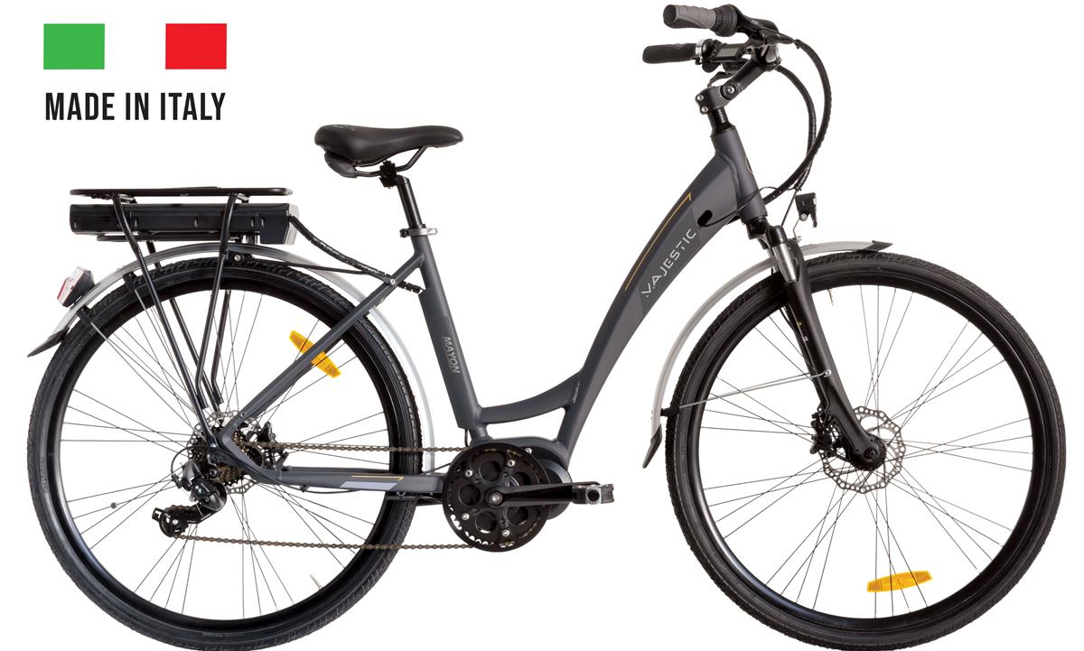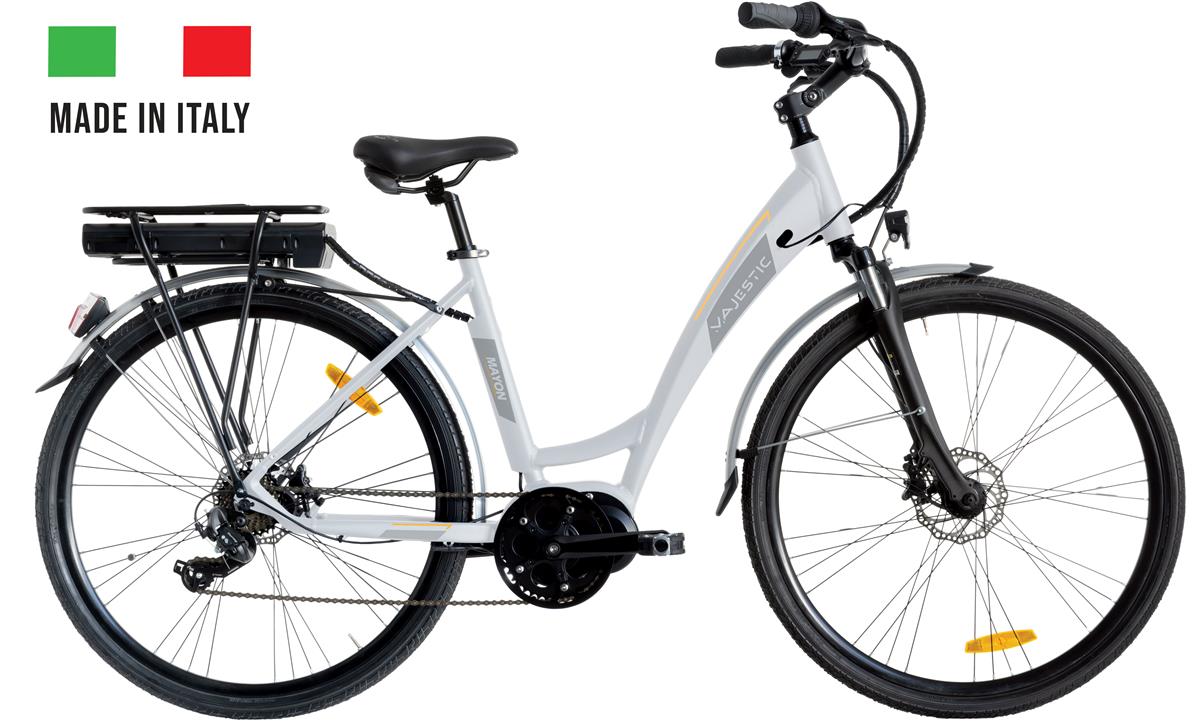 E-BIKE TREKKING UNISEX RUOTE 27,5” MOTORE CENTRALE FIVE BATTERIA INTEGRATA MADE IN ITALY Verniciatura ad acqua colore Grigio chiaro Zephyr è progettata per offrire versatilità e comfort durante lunghi percorsi su varie superfici, come strade asfaltate, sterrati e anche terreni leggermente accidentati. Dotata di forcella ammortizzata che assorbe le asperità e di pneumatici a impronta larga, garantisce una maggiore stabilità e ammortizzazione, e una posizione di guida più eretta che riduce lo stress sulla schiena e sui polsi durante le lunghe pedalate. Accessoriata con supporto per portapacchi e parafanghi, cambio a 10 velocità, freni a disco idraulici e una comoda Sella Bassano che la rendono compagna ideale per il touring elaio in alluminio idroformato 46x62 cm Ruote 27,5” x 2,1” KENDA Motore centrale F90 FIVE 250W/90Nm Velocità max 25 km/h Sensore di pedalata di coppia Batteria integrata resistente all’acqua IPX5 - 522 Wh 36V - 14,5 Ah 3,5 kg - Li-Ion cells BAK/EVE 36V, FIVE - Tempo di ricarica 8h - Percorrenza MAX 135 km Forcella anteriore ammortizzata e bloccabile 63 MM Suntour SF NEX E25 Freni anteriori e posteriori a disco idraulico Trasmissione catena KMC special e-bike Cambio 10 rapporti Shimano Deore 11-36T Luci LED anteriore e posteriore Display 3,5” LCD retroilluminato 5 livelli di assistenza, dispositivo soft start, presa USB Sella Bassano Peso (no batteria) 25 Kg Verniciatura ad acqua colore Grigio Chiaro