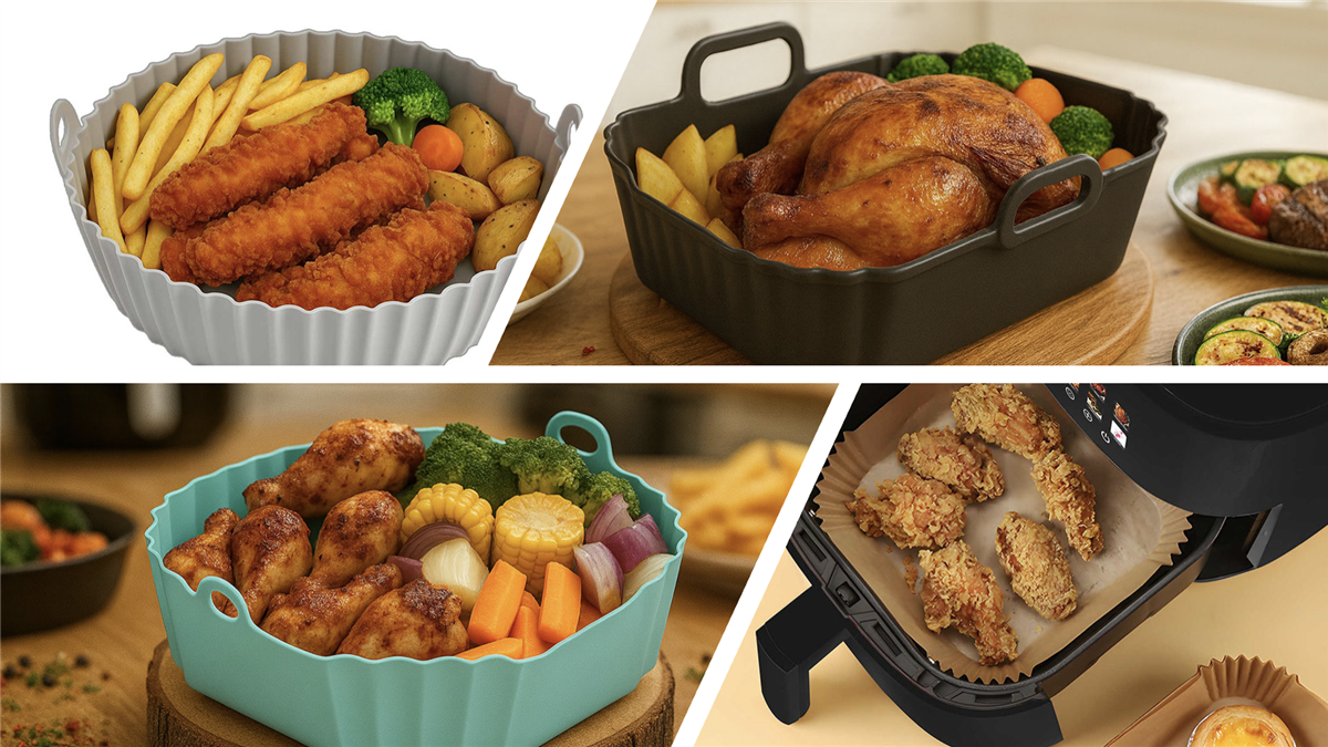- Inserti di carta per friggitrici ad aria - 16 x 16 x 4,5 cm -Impermeabile - Stagno all'olio - Il cibo non si attacca - Carta rivestita di silicone - Forma quadrata